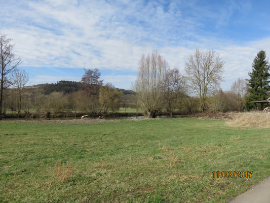 Selbst der Bürgermeister weiß nicht, wo dies Auenwälder zu finden sind. (Es gibt lediglich eine schmale Uferbegrünung.)